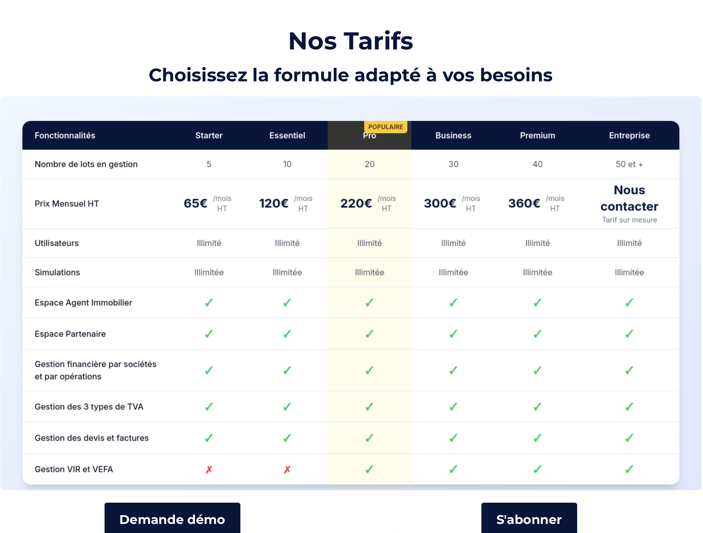 Tarifs en fonction du nombre de lots en gestion