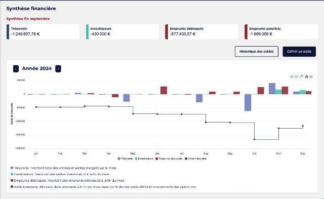 Onglet synthèse de la trésorerie pour gérer la trésorerie de la société.