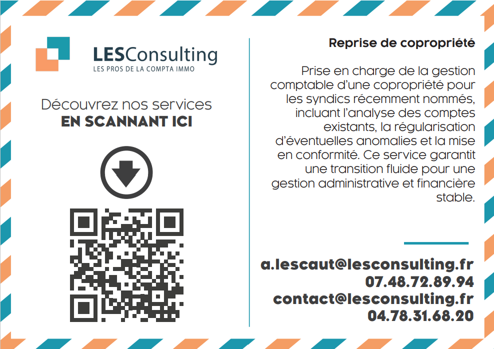 LESConsulting est un cabinet spécialisé dans l’accompagnement des professionnels de l’immobilier. Nous proposons des prestations comptables, de la formation, de l’assistance opérationnelle ainsi qu’un appui pour les reprises et créations de syndic. Notre approche personnalisée vise à optimiser votre organisation, sécuriser votre développement et accompagner durablement votre croissance.